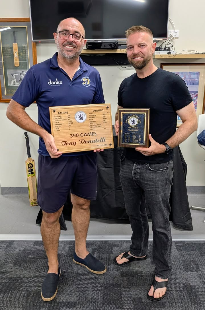 Congratulations to Tony 'Turtle' Donatelli (350 games) and Julian Lane (250 games) on achieving their milestones for the club recently.